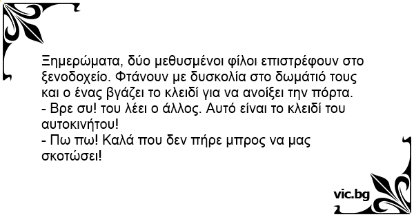 - Βρε συ! του λέει ο άλλος. Αυτό είναι το κλειδί του αυτοκινήτου!