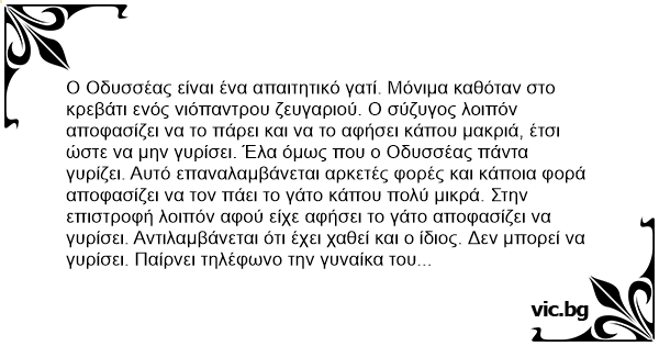 "Γυναίκα χάθηκα, είναι εκεί αυτό το πουστόγατο ο Οδυσσέας;"