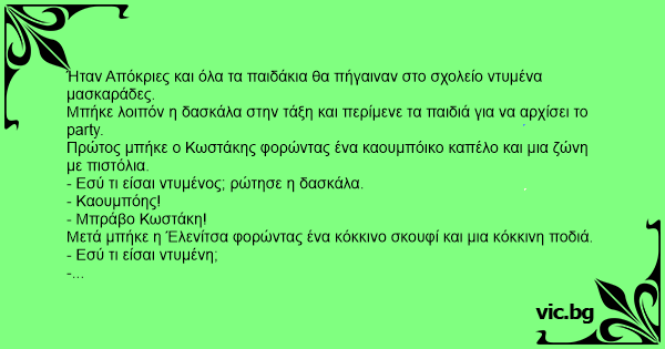 Ήταν Απόκριες και όλα τα παιδάκια θα πήγαιναν στο σχολείο ντυμένα μασκαράδες.