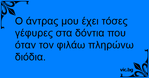 Ο άντρας μου έχει τόσες γέφυρες στα δόντια που όταν τον φιλάω πληρώνω διόδια.