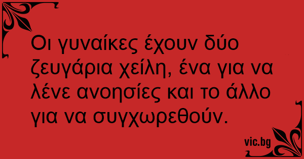 Οι γυναίκες έχουν δύο ζευγάρια χείλη, ένα για να λένε ανοησίες και το άλλο για να συγχωρεθούν.