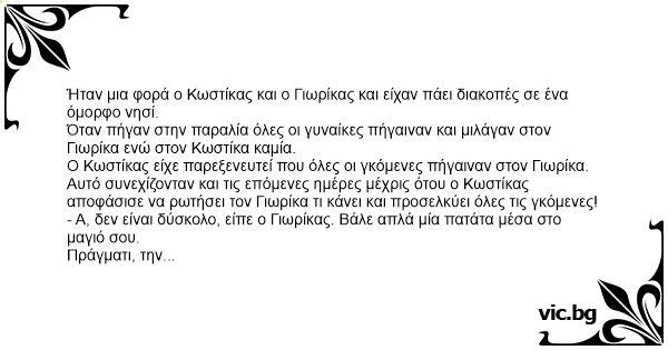 Ήταν μια φορά ο Κωστίκας και ο Γιωρίκας και είχαν πάει διακοπές σε ένα όμορφο νησί.