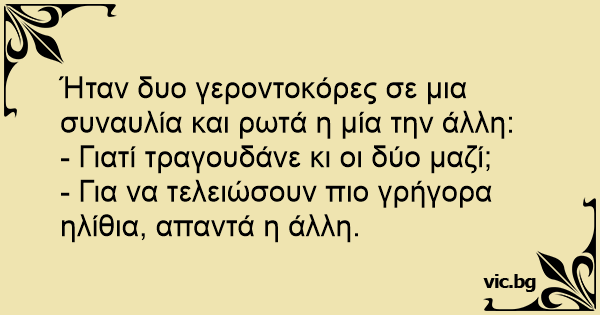 - Για να τελειώσουν πιο γρήγορα ηλίθια, απαντά η άλλη.