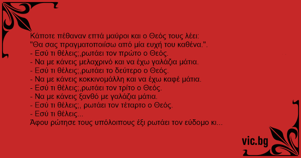 - Εσύ τι θέλεις;,ρωτάει τον πρώτο ο Θεός.