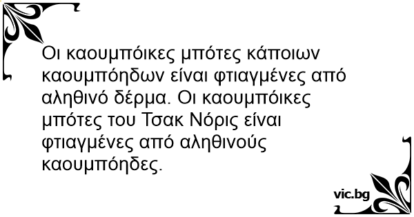Οι καουμπόικες μπότες κάποιων καουμπόηδων είναι φτιαγμένες από αληθινό δέρμα. Οι καουμπόικες μπότες του Τσακ Νόρις είναι φτιαγμένες από αληθινούς καουμπόηδες.