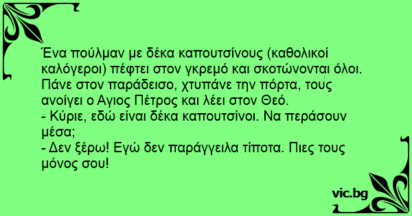 Πάνε στον παράδεισο, χτυπάνε την πόρτα, τους ανοίγει ο Αγιος Πέτρος και λέει στον Θεό.