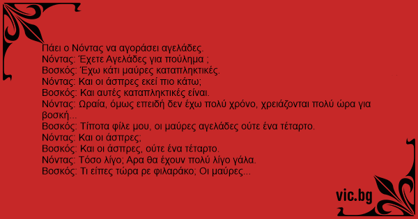 Νόντας: Ωραία θα αγοράσω μαύ ρες αγελάδες. Αλλά λύσε μου μια απορία: Γιατί τόση εμμονή με τις μαύρες αγελάδες;