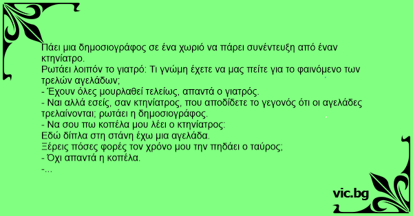 - Να σου πω κοπέλα μου λέει ο κτηνίατρος: