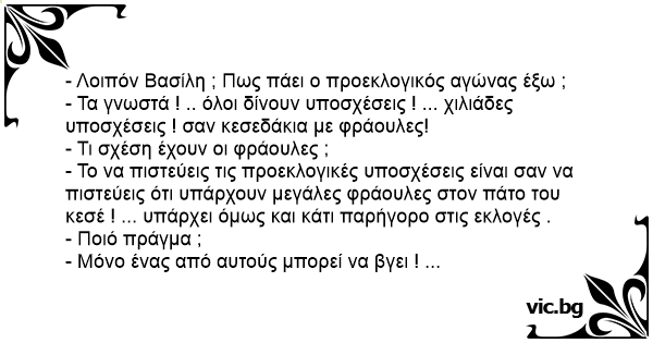 - Λοιπόν Βασίλη ; Πως πάει ο προεκλογικός αγώνας έξω ;