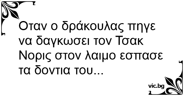 Οταν ο δράκουλας πηγε να δαγκωσει τον Τσακ Νορις στον λαιμο εσπασε τα δοντια του...