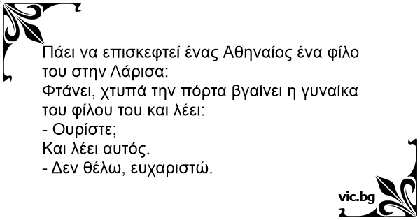 Πάει να επισκεφτεί ένας Αθηναίος ένα φίλο του στην Λάρισα: