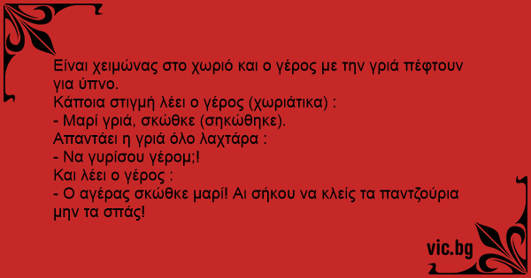Είναι χειμώνας στο χωριό και ο γέρος με την γριά πέφτουν για ύπνο.