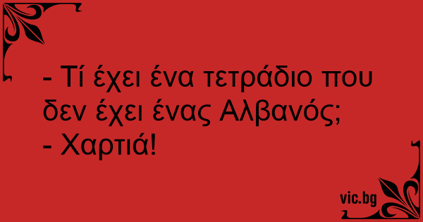 - Τί έχει ένα τετράδιο που δεν έχει ένας Αλβανός;