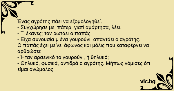- Συγχώρησε με, πάτερ, γιατί αμάρτησα, λέει.