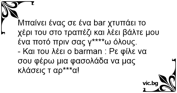 - Και του λέει ο barman : Ρε φίλε να σου φέρω μια φασολάδα να μας κλάσεις τ αρ***α!