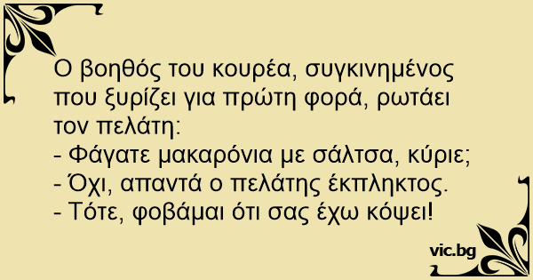 - Όχι, απαντά ο πελάτης έκπληκτος.
