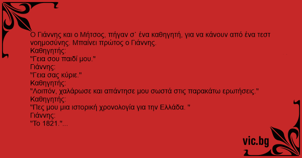 "Μπράβο παιδί μου. Τώρα πες μου ένα ιστορικό πρόσωπο του `21."