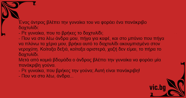 - Ρε γυναίκα, που το βρήκες το δαχτυλίδι;