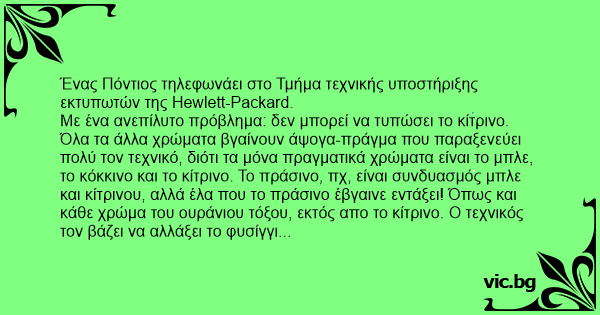 Συναδέλφους για βοήθεια- τίποτα. Μετά απο δυο ώρες άκαρπο ψαχτηρι ήταν έτοιμος να πει στον Πόντιο να τους στείλει τον εκτυπωτή για επισκευή, οπότε ρωτάει ο Πόντιος.