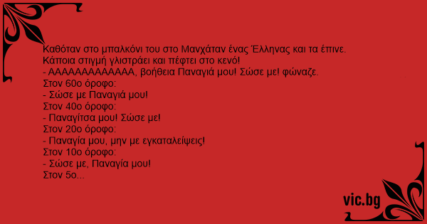 Καθόταν στο μπαλκόνι του στο Μανχάταν ένας Έλληνας και τα έπινε.