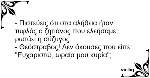 - Πιστεύεις ότι στα αλήθεια ήταν τυφλός ο ζητιάνος που ελεήσαμε; ρωτάει η σύζυγος.