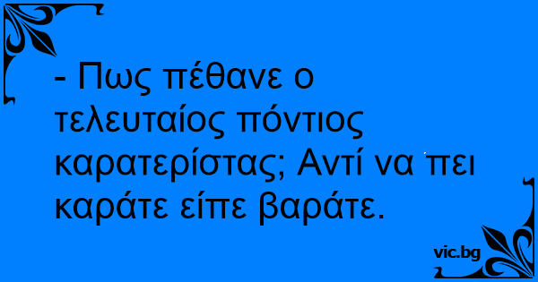 - Πως πέθανε ο τελευταίος πόντιος καρατερίστας; Αντί να πει καράτε είπε βαράτε.