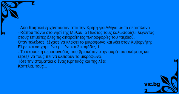 Τότε την σταματάει ο ένας Κρητικός και της λέει: