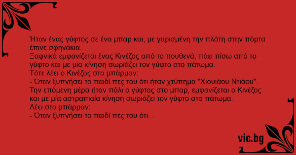 Τότε λέει ο Κινέζος στο μπάρμαν: