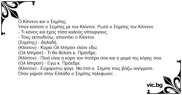 Ήταν κάποτε ο Σημίτης με τον Κλίντον. Ρωτά ο Σημίτης τον Κλίντον: