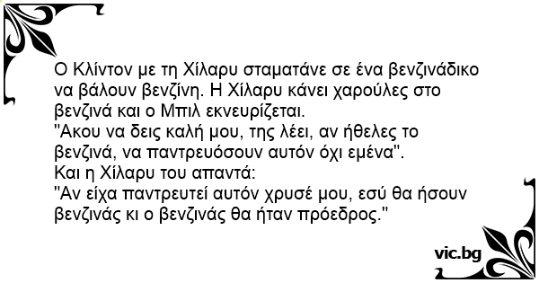 "Ακου να δεις καλή μου, της λέει, αν ήθελες το βενζινά, να παντρευόσουν αυτόν όχι εμένα".