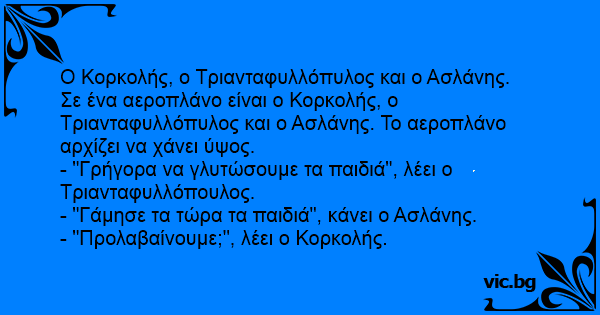 Σε ένα αεροπλάνο είναι ο Κορκολής, ο Τριανταφυλλόπυλος και ο Ασλάνης. Το αεροπλάνο αρχίζει να χάνει ύψος.