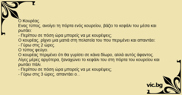 Ο κουρέας περιμένει ότι θα γυρίσει σε κάνα δίωρο, αλλά αυτός άφαντος.