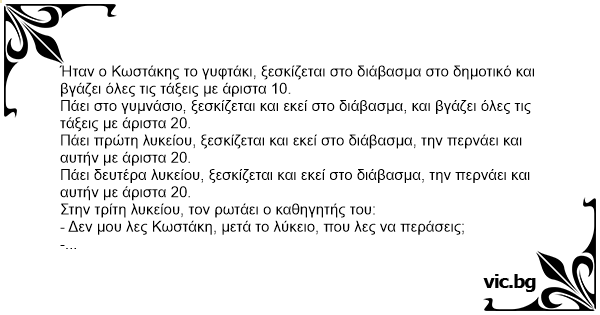 Ήταν ο Κωστάκης το γυφτάκι, ξεσκίζεται στο διάβασμα στο δημοτικό και βγάζει όλες τις τάξεις με άριστα 10.