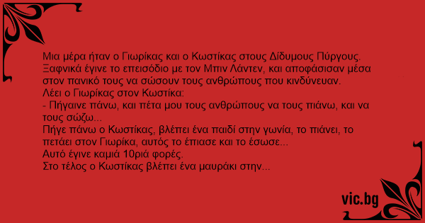 Μια μέρα ήταν ο Γιωρίκας και ο Κωστίκας στους Δίδυμους Πύργους.