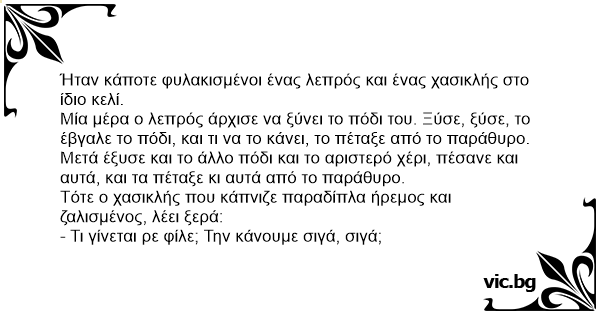 Ήταν κάποτε φυλακισμένοι ένας λεπρός και ένας χασικλής στο ίδιο κελί.