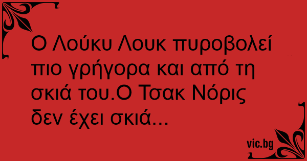 Ο Λούκυ Λουκ πυροβολεί πιο γρήγορα και από τη σκιά του.Ο Τσακ Νόρις δεν έχει σκιά...