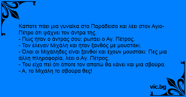Перо вентилаторот Вентилатор Хилъри Клинтън умряла и попаднала в рая. Στον παράδεισο... Une femme décède et arrive au paradis. Elle se retrouve devant Saint Pierre et lui demande : Un uomo passa a miglior vita e giunge finalmente in paradiso dove viene accolto da San Pietro in una stanza maestosa e elegante. Muere un ciudadano argentino y va al cielo. Un día mientras pasea por los alrededores, se topa con una casa muy pintoresca y decide visitarla. Ahí se encuentra con San Pedro, quien lo saluda y lo invita a un café. Mientras San Pedro trae el café, el argentino observa la casa, y ve que hay relojes... Ein Mann kommt in den Himmel und sieht eine Menge Uhren, deren Zeiger sich alle in verschiedenen Geschwindigkeiten bewegen. Er fragt Petrus: "Was sind denn das für seltsame Uhren?" Petrus antwortet: "Für jede Stadt auf der Erde gibt es eine Uhr, und jedesmal, wenn ein Idiot geboren wird,... Un uomo sul punto di morte si rivolge alla moglie: "Cara ricorda che se mi tradirai io mi rigiro nella tomba" "No caro non ti preoccupare, ti sarò sempre fedele. E l'uomo muore e va in Paradiso. Dopo un po' di tempo muore anche la moglie che desiderosa di ritrovare il marito si presenta da San... Un presidente muore e va in cielo, andando in cielo trova tanti orologi e si va ad informare con un angelo che passava da lì e il presidente gli chiede: "ma che ci fanno tutti questi orologi qui?" e l'angelo gli risponde: "sono orologi che controllano quando si fa l'amore" e il presidente: "ah... donald rumsfeld ölmüş ve cennete gitmiş.. aziz peter'in karşisinda cennetin kapsinda dururken arkasinda saatlerle dolu çok büyük bir kapi görmüş ve sormuş: - "bu saatler ne böyle??" aziz peter... Un politicien arrive au purgatoire et remarque qu'il y a énormement d'horloge.  IL demande à st Pierre:  - A quoi servent ces horloges ?  - A chaque horloge correspond une personne, et à chaque... A esposa de George Bush morreu e foi para o céu. Enquanto estava em frente a São Pedro nos Portões Celestiais, ela viu uma enorme parede com relógios atrás dele. Ela perguntou: — Que são todos... Un homme mort arrive à la porte du paradis, mais juste avant de pouvoir y rentrer Saint-Pierre y apparait et dit : - Pas si vite jeune homme, d'abord je dois voir ton horloge ! Cria Saint Pierre. -... Esto es un hombre que se muere y va al cielo y le dice a San Pedro : - Oiga San Pedro, ¿Por qué hay tanto reloj por aquí? San Pedro responde: - Porque cada reloj pertenece a cada país del mundo y...