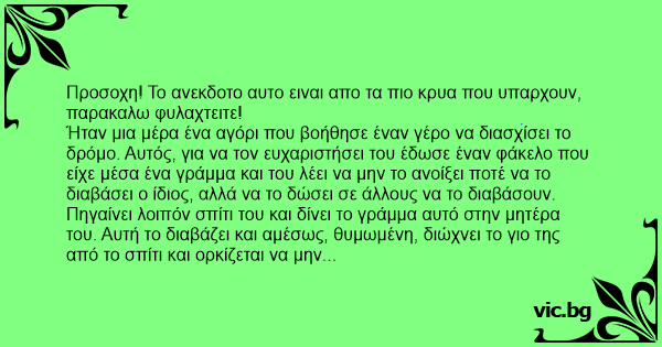Προσοχη! Το ανεκδοτο αυτο ειναι απο τα πιο κρυα που υπαρχουν, παρακαλω φυλαχτειτε!