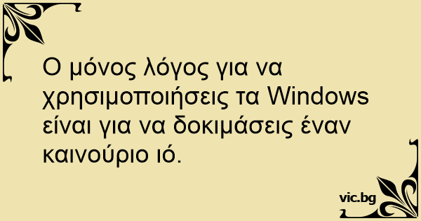Ο μόνος λόγος για να χρησιμοποιήσεις τα Windows είναι για να δοκιμάσεις έναν καινούριο ιό.