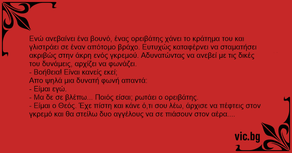 Ο ορειβάτης μένει άφωνος για λίγο και μετά απο λίγο φωνάζει: