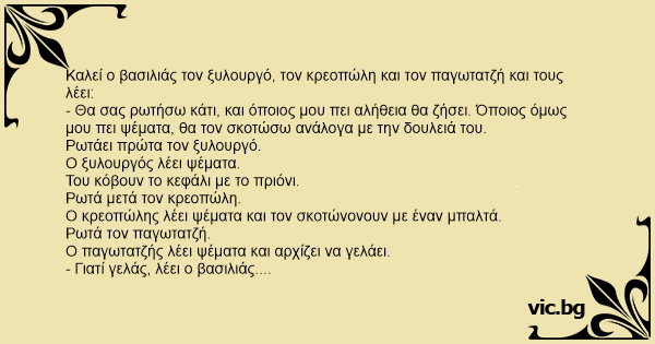 - Γιατί γελάς, λέει ο βασιλιάς.