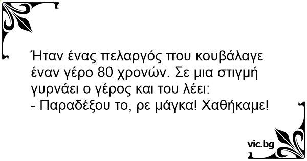 Είναι ένας πελαργός και κουβαλάει ένα γέροντα 80 χρονών. Κάποια στιγμή γυρνάει ο γέροντας και λέει στον πελαργό: