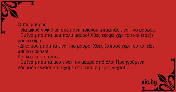 - Εμένα μπαμπά μου πολύ μαύρο! Χθές έκοψε χέρι του και έτρεξε μαύρο αίμα!