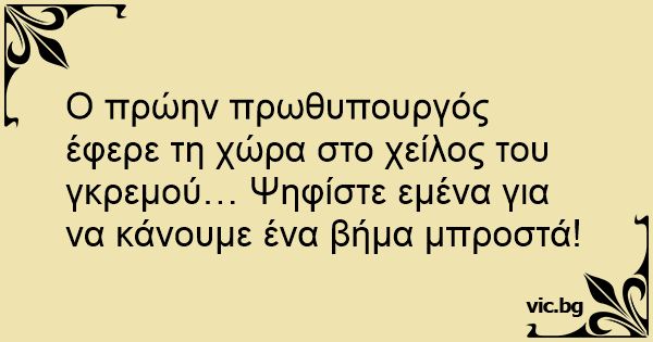 Ο πρώην πρωθυπουργός έφερε τη χώρα στο χείλος του γκρεμού… Ψηφίστε εμένα για να κάνουμε ένα βήμα μπροστά!