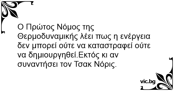 Ο Πρώτoς Νόμος της Θερμοδυναμικής λέει πως η ενέργεια δεν μπορεί ούτε να καταστραφεί ούτε να δημιουργηθεί.Εκτός κι αν συναντήσει τον Τσακ Νόρις.