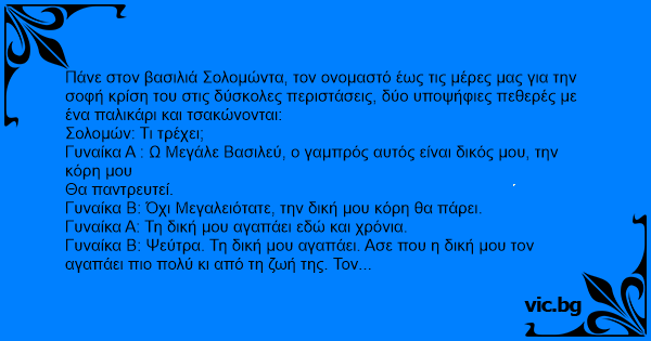 Γυναίκα Β: Όχι Μεγαλειότατε, την δική μου κόρη θα πάρει.