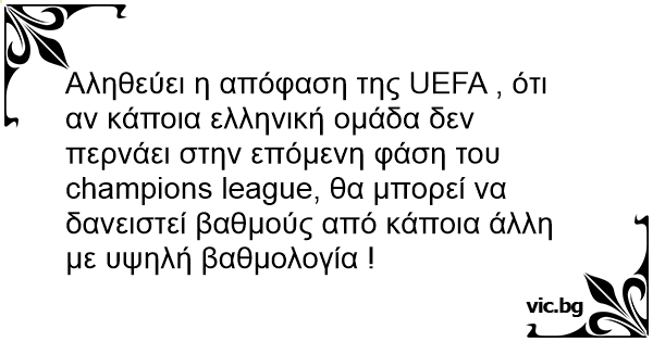 Αληθεύει η απόφαση της UEFA , ότι αν κάποια ελληνική ομάδα δεν περνάει στην επόμενη φάση του champions league, θα μπορεί να δανειστεί βαθμούς από κάποια άλλη με υψηλή βαθμολογία !