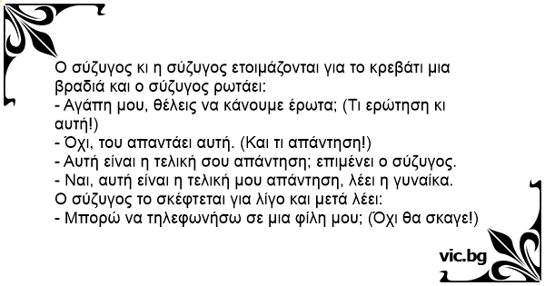 - Αυτή είναι η τελική σου απάντηση; επιμένει ο σύζυγος.