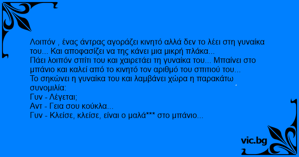 Λοιπόν , ένας άντρας αγοράζει κινητό αλλά δεν το λέει στη γυναίκα του... Και αποφασίζει να της κάνει μια μικρή πλάκα...