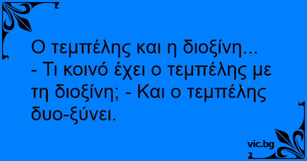 - Τι κοινό έχει ο τεμπέλης με τη διοξίνη; - Και ο τεμπέλης δυο-ξύνει.